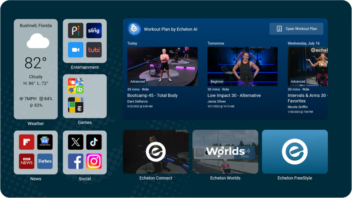 Experience FitOS, Echelon's premier entertainment fitness platform. Stream your favorite shows, connect on social media, play games or more - all while working out and seamlessly tracking your stats.